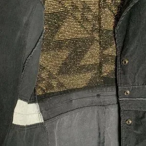 Vintage mix of corduroy and sweater statement blazer. I took pictures of the inside of the blazer and of one of its sleeves to show how it was made and its contrasting materials. If you have any questions please feel free to ask. I live in a smoke free and pet free environment.