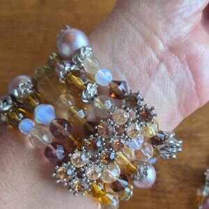 Gorgeous, heavy silver beaded bracelet and necklace set. Jewel tones that go with many outfits. Pristine condition