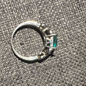 Silver tone. No markings. Center stone looks like an aquamarine.