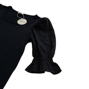 Status By Chenault Black Top With Eyelet 3/4 Length Puff Sleeve - Size Large