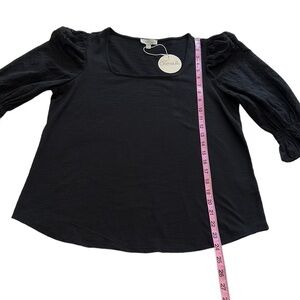 Status By Chenault Black Top With Eyelet 3/4 Length Puff Sleeve - Size Large