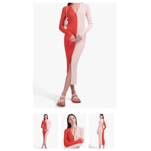 Staud Shoko Colorblock Sweater Dress Orange Light Pink size S - worn a couple of times, like new!
