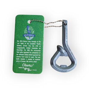 Celebrate Canadian railway heritage with the 2014 Steam Whistle Pilsner bottle opener, designed to resemble 'The Last Spike'. Perfect for collectors and beer enthusiasts.