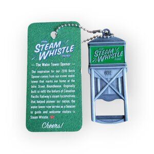 This Steam Whistle Water Tower Bottle Opener, inspired by the brewery's iconic Toronto tower, is a rare collectible item from 2016.