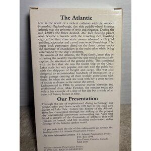 This VHS provides a detailed and historical account of the Steamer Atlantic. Ideal for history enthusiasts or collectors interested in maritime preservation.