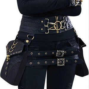 Steampunk Industrial Belt Bag With Zipper & Buckle Closures