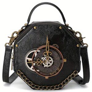Steampunk Industrial Roman Numeral Antique Clock Octagon Purse Bag