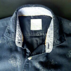 Steel & Jelly SZ M Linen & Cotton Navy Print Men's Short Sleeve Button Up Shirt