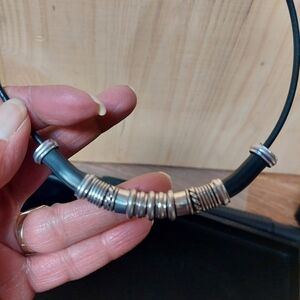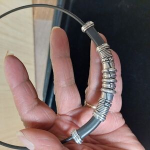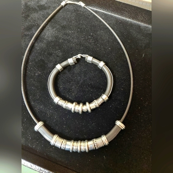 Steel Spacers Necklace and Bracelet Set on black cording. Hook closure. Simple stylish design enhances any outfit.