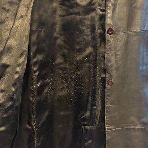 Chic and timeless Stefanel 100% Leather Long Coat in classic black. This piece has a sleek, minimalist silhouette with a Matrix-inspired, Y2K feel—perfect for fall and winter layering.