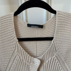 Stefanel Cotton Knit Button-Up Long Cardigan - Size L - Beige - EUC