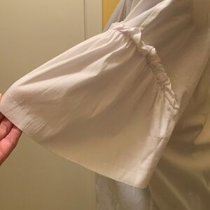 Gathered/ruffle detail on the sleeve approximately at the drop shoulder area