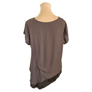 Stella Carakasi Brown Double Layer Hemp Blend Short Sleeve Blouse Sz M