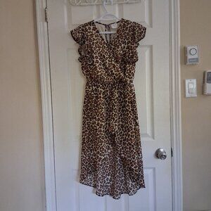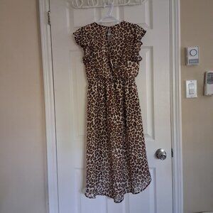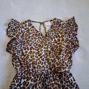Stella Cruz Girls Size XL (14-16) Leopard Print Ruffle Sleeve Overlay Romper
