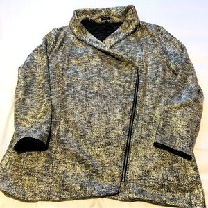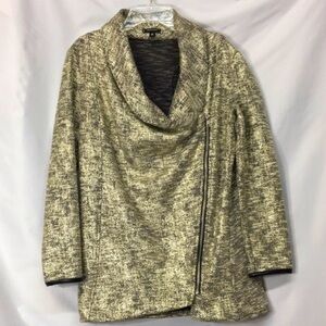 Stella & Dot 2X Gold Rebel Metallic Moto Jacket Cardigan Holiday Asymmetrical