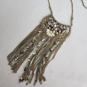Stella & Dot Analena Pendant Sparkle Fringe Gold Statement Necklace