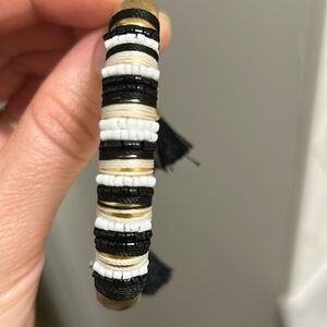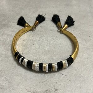 Stella & Dot Bettina Cuff Bracelet Beaded Tassel Gold Black White