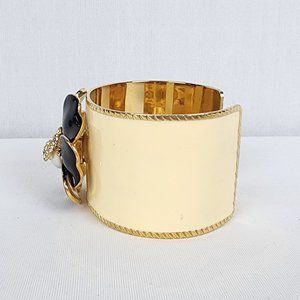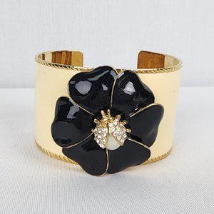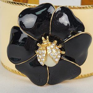 Stella & Dot Black Flower Rhinestone Pearl Ladybug Cuff Bracelet