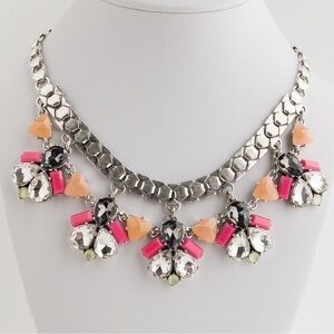 Stella & Dot Callie Statement Necklace Crystal Rhinestone Floral Silver Tone