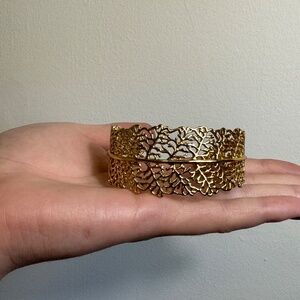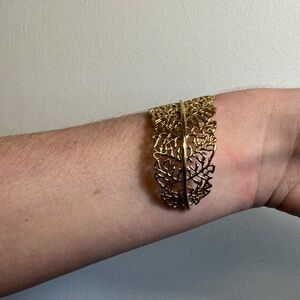 Stella & Dot gold cuff with filigree detailing. Matching chandelier earrings also for sale: https://poshmark.ca/listing/Stella-Dot-Gold-Chandelier-Earrings-68f27ea18fa2073891c8e28b