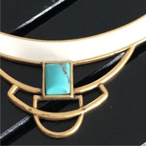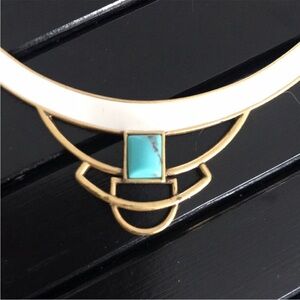Elegant gold necklace featuring a turquoise accent. Perfect for adding a touch of sophistication. In fair vintage condition.