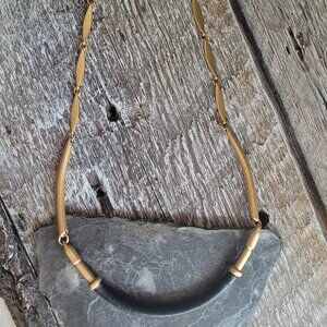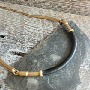Stella & Dot Gold and Black Leather Choker Necklace