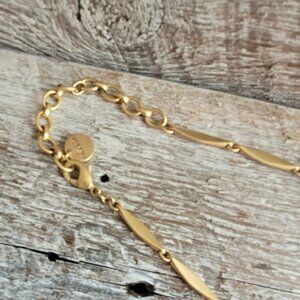 Elevate your accessory game with the stunning black and gold choker necklace by Stella & Dot. Featuring a chic metal bar accent, this adjustable-length piece ensures a perfect fit for any neckline, making it a versatile addition to your jewelry collection. With a secure lobster clasp closure, you can wear it with confidence, whether dressing up for a night out or adding a touch of elegance to your everyday look. Although the center piece has a small area where the leather is missing, the necklace remains in good condition, allowing you to enjoy its stylish aesthetic at a fantastic value. Don't miss out on this eye-catching statement piece!