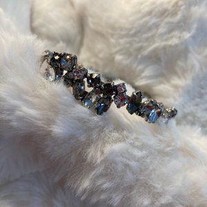 Off-set smoky and clear baguettes coil around your wrist to add sparkle and shine.