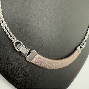 Silver tone snake chain (double strand) with reversible detaching leather in silver grey and black