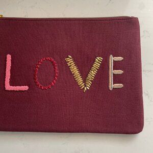 Stella & Dot 'LOVE' Retired Lined Zip Clutch w Tassel Burgundy + Pink OS NWOT