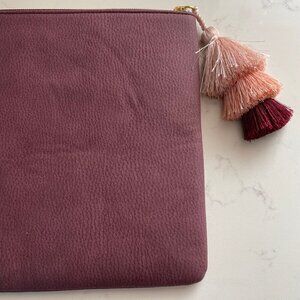 Stella & Dot 'LOVE' Retired Lined Zip Clutch w Tassel in Burgundy + Pink NWOT