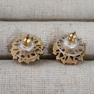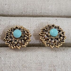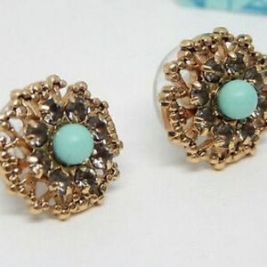 Stella & Dot Marchesa Earrings Large Art Deco Studs Torquoise & Gold Earrings