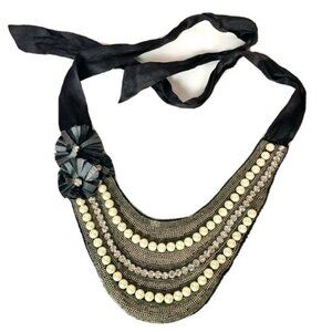 Stella & Dot Natasha Glass Beaded Faux Pearl Bib Necklace Black
