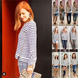 Stella & Dot Navy Blue & White Stripped Zipper side