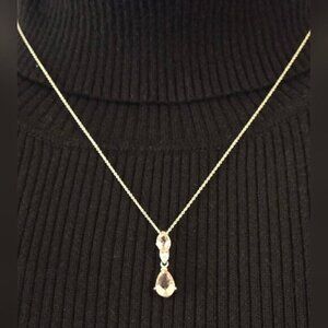 Stella & Dot Pink Tear Drop Gemstone Pendant on a Sterling Silver Necklace. The necklace is in good used condition.
