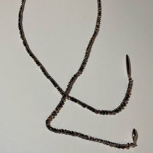 Long open end necklace.