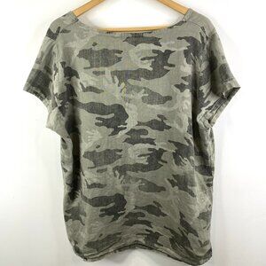 Stella Martini Blouse Top Shirt Womens Plus Size 1X Green Camo Camouflage Linen