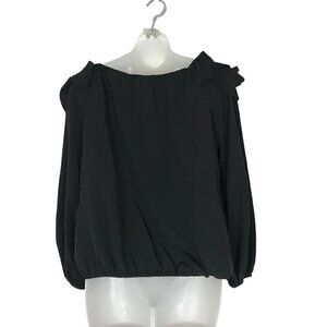 Stella McCartney 100% Silk Black Blouse With Ruffles Size 2 With Elastic Waist Band