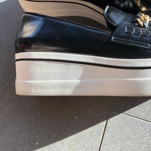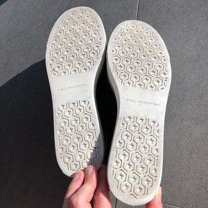 With chunky white soles with Stella McCartney logo and a contrasting black stripe.