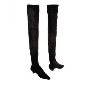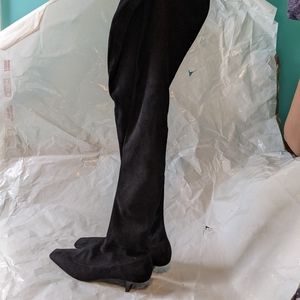 Elegant over the knee boots. Sleek black design. Perfect for any occasion.