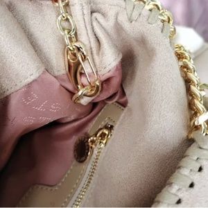 An adaptable iteration of our iconic Falabella tote, this fold-over tote bag is infinitely wearable. The signature diamond-cut recycled brass and aluminium chain instantly characterises this dynamic bag. Fully lined with a recycled fabric made from plastic bottles, wear the Falabella fold-over tote in one hand for a classic look or over the shoulder to showcase its duality.