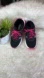 - Black sock trainers with faux leather details for girls by Stella McCartney Kids. They have bright pink laces to match the non-slip rubber soles. The sides of the soles have paint speckle effect.