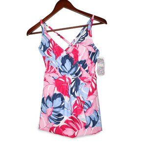 Stella Parker One Piece Skirted Swimsuit Floral Wrap Pink Blue Modest Pool Beach