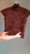 This burgundy top will dress up any outfit. Looks great with black camisole and black pants. Can dress up or down. Mandarin stand up collar. Cap sleeves. Comfortable to wear. Sheer (see through)