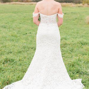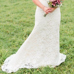 Stella York lace wedding dress. Size 8 I believe. Was brought in slightly at the waist. Worn once and in perfect condition. Has been dry cleaned.