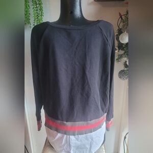 Stella and Dot Black Long Sleeve Top with Removable Faux Shirt Trim XL