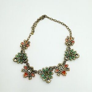 Enhance your look with the stunning Stella & Dot Elodie Necklace, featuring a beautifully designed flower pendant in vibrant green and orange hues. This eye-catching statement piece is perfect for those who appreciate unique and bold jewelry. With a high-quality design, signed label, and customizable options, it makes a versatile and stylish addition to any jewelry collection.