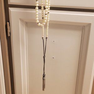 Beautiful white pearl necklace that can be worn many ways! This can be added to your Christmas Party outfit, or be used as the final touch on your 1920s outfit! The tassel can be tied beautifully into a bow, or left to dangle tied in a knot.