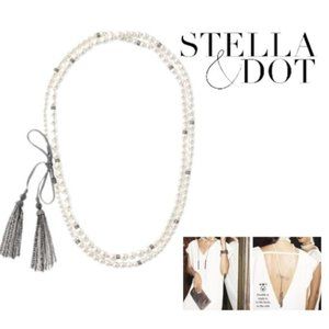 Stella and Dot Mara Pearl Necklace Pavé Rondials and Metallic Cord Tassels