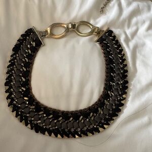 MSRP $198 - Vintage 2012 Stella & Dot "Tempest" Woven ribbon and crystal rhinestone bib necklace.